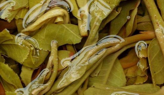 都晓得有弹性是个什么感觉吧!用手指捏叶底,以弹性强者为佳,表示陈化期间自然、茶菁幼嫩、制造得宜,未被湿热、熟化处理。叶脉突显,触感生硬,无弹性感,也统统是次级品。