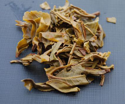 冲泡后茶叶逐次开展最后能完全舒展开,这样的茶叶就是制造技术良好、陈化期稳定,通常冲泡次数亦多。冲泡后很快开展的茶叶,大都是粗老之茶菁,条索不紧结,一般不耐泡。叶面不开展或冲泡多次仍只有小程度开展的茶叶,则是制造过程失败或陈期时间环境不好的。或者被高温焙火,叶面茸毛会掉落,甚至入口后会感觉喉头有点燥。